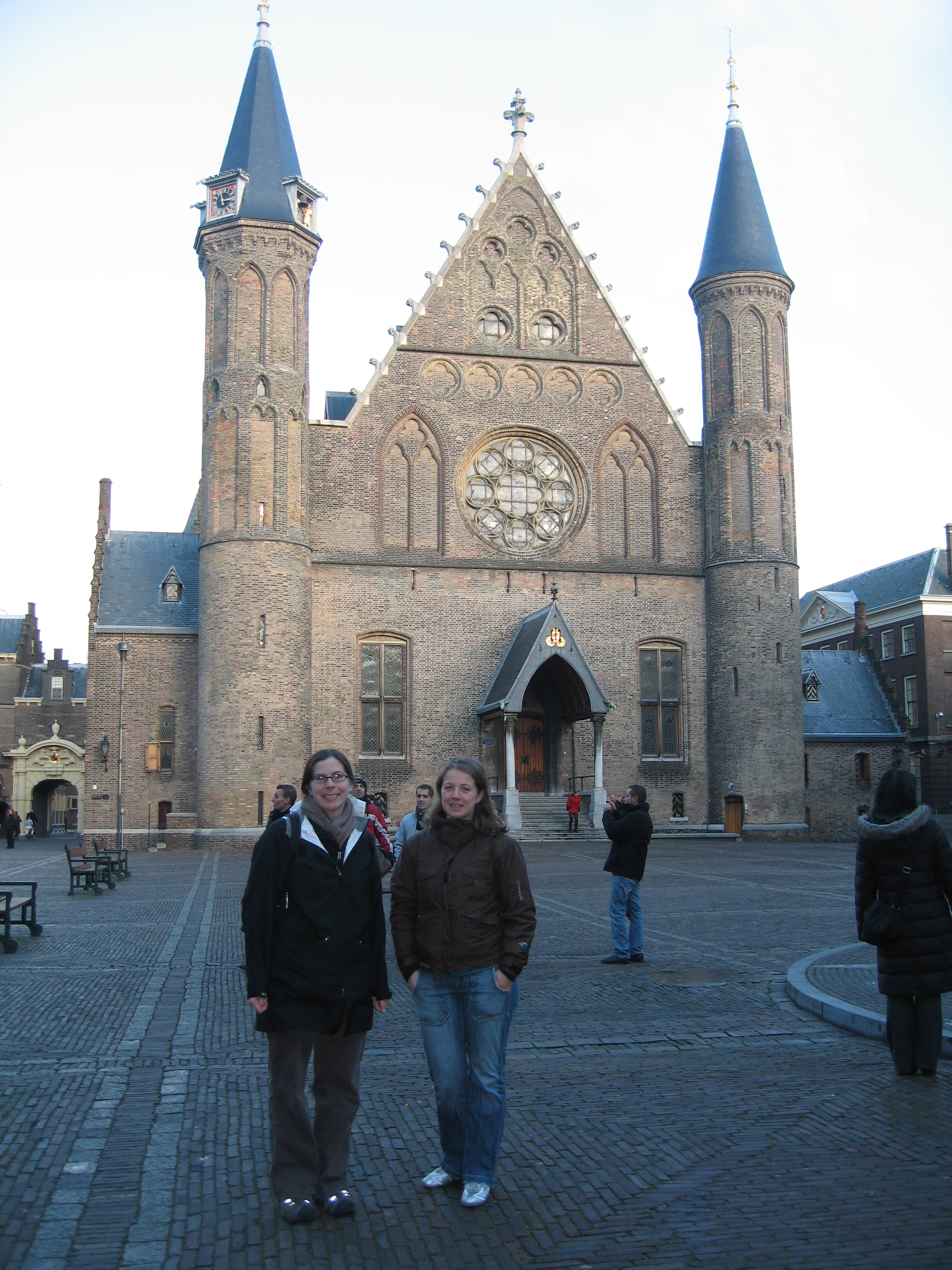 | Jeanine and I in front of one of the government buildings in The Hague. | |