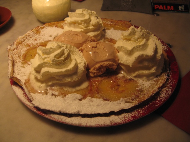 Um, this was a bit indulgent, but I was curious to try this combination of apple pancakes and cinnamon ice cream. I scraped off much of the whipped cream because it was a bit much... |
