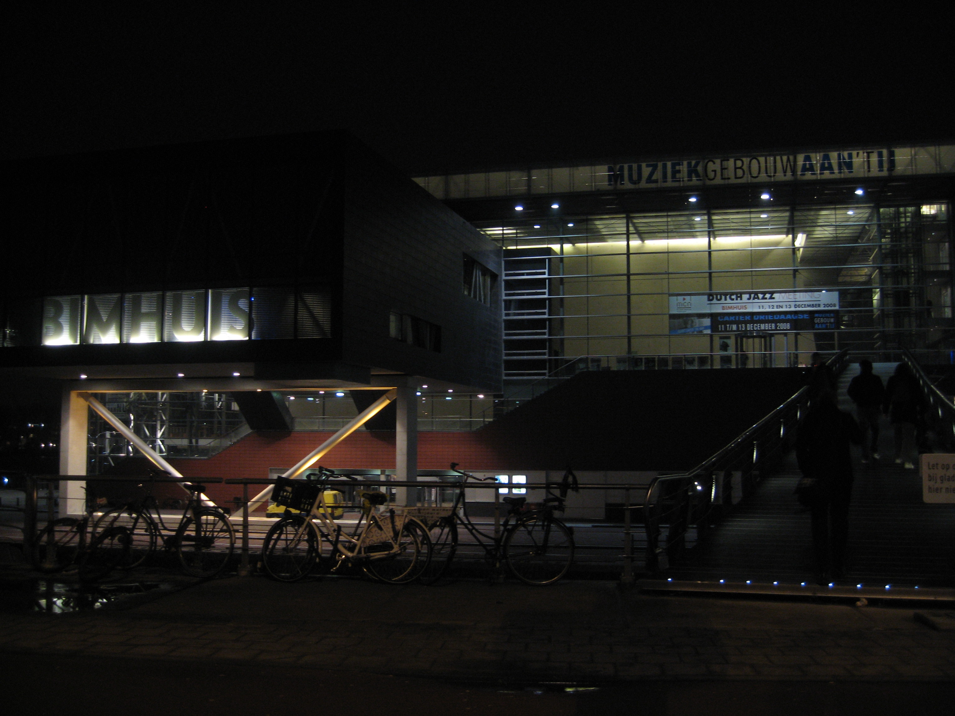 | The final concert of the evening was at Bimhuis, in the left of this photo. I attended the 2nd of 3 concerts in a series called the Dutch Jazz Meeting. | |