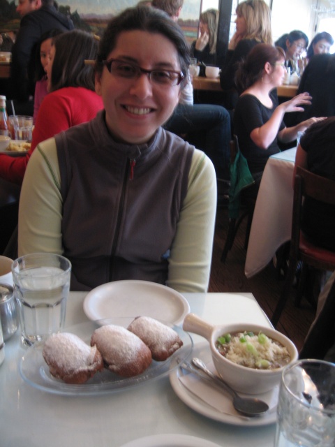 | Then next day, Aparna and I went on a walk to run some errands and had an excellent brunch at Brenda's French Soul Food. We had a strange mix of sweet and savory food, including beignets with granny Smith Apple and cinnamon honey butter, as well as gumbo. | |